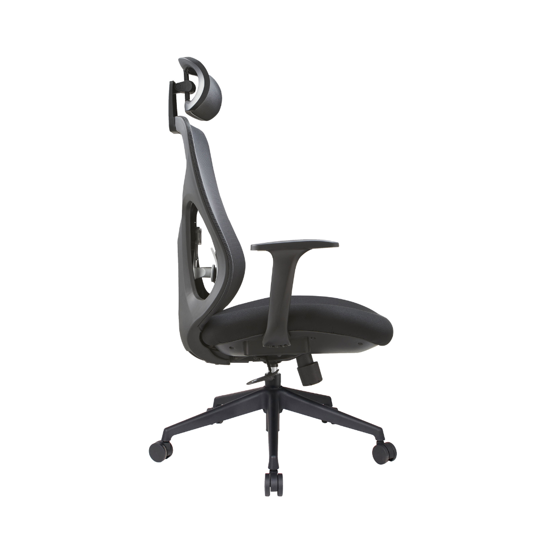 כסא מנהלים דגם אברלסט גבוה משלב ריפוד בד איכותי עם גב רשת אלסטי לנוחות ונשימה.