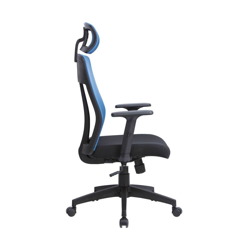 מושב הכסא מרופד בבד איכותי ונושם, והגב עשוי רשת מאווררת השומרת על תחושת רעננות גם בימי עבודה ארוכים.