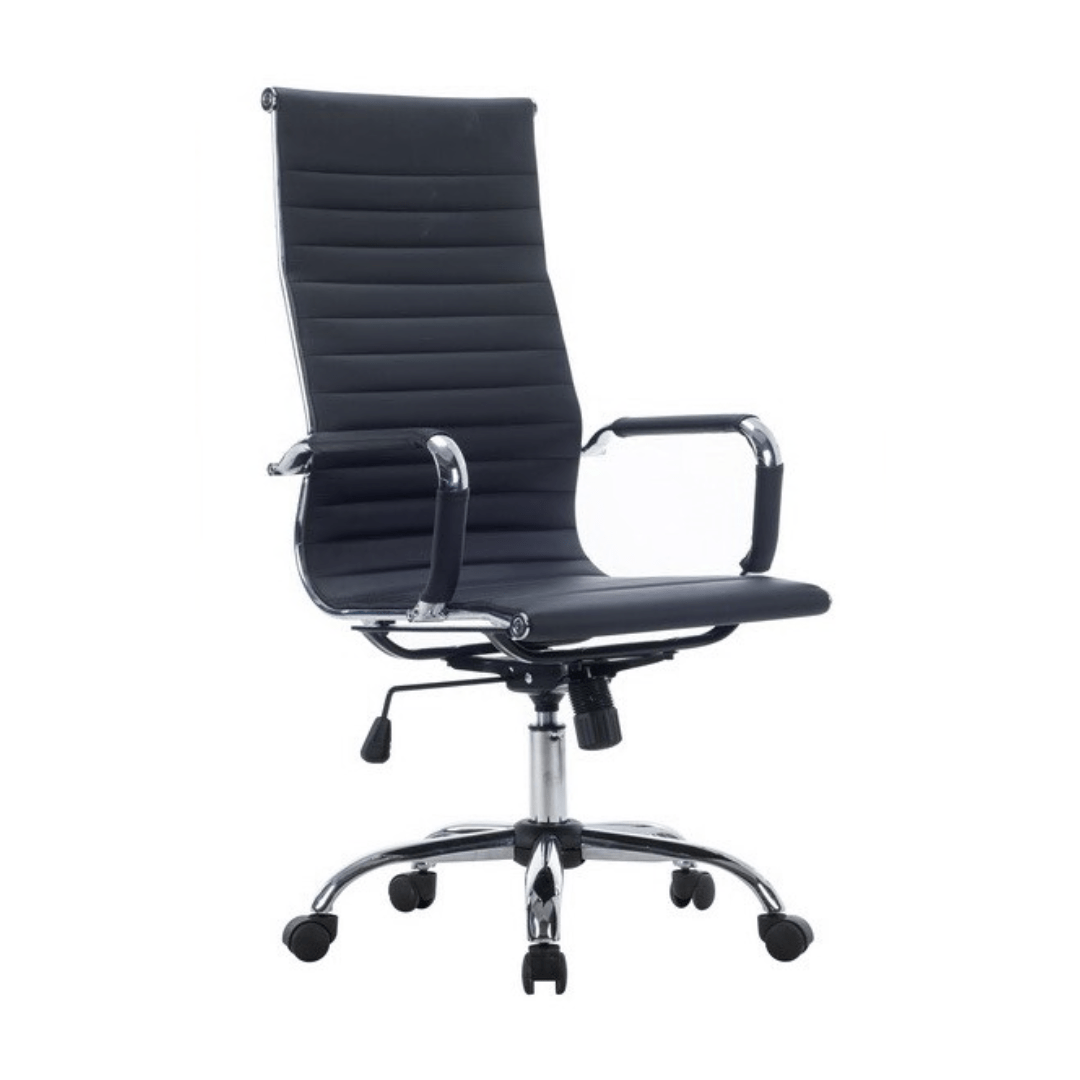 כסא מנהלים גבוה דגם גלרי כולל ידיות קבועות מצופות ניקל מבריק שמעניקות תחושת יציבות ואלגנטיות.