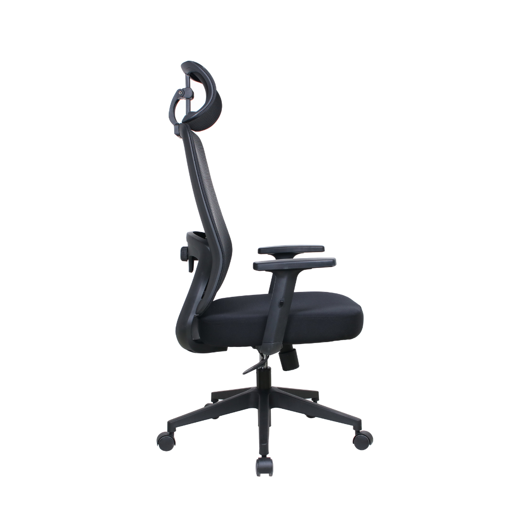 כסא מנהלים דגם פראוד גבוה מציע ריפוד בד איכותי עם גב רשת שחור אלסטי לנוחות מירבית.