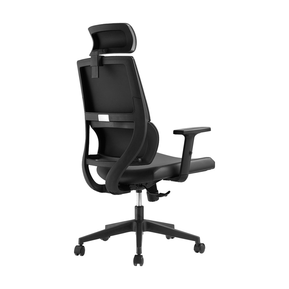 המושב מרופד בדמוי עור איכותי, הגב הגבוה והמשענת תומכים בגב ובצוואר לאורך שעות העבודה.